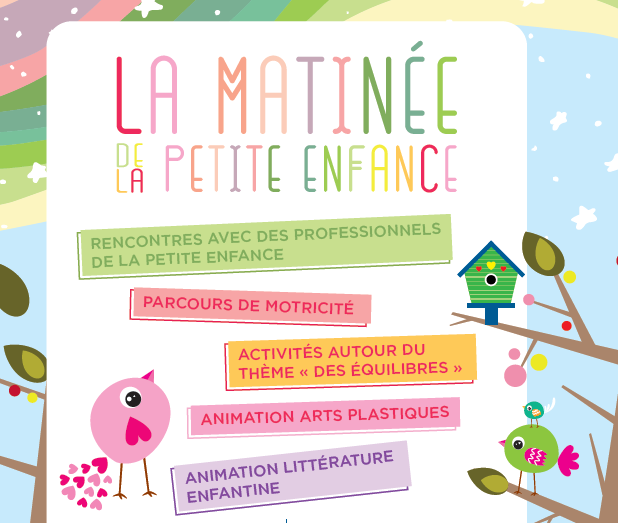 Dans le cadre de la Semaine nationale de la petite enfance, la ville vous propose de partager un moment privilégié avec vos tout-petits et d’explorer l’univers de la petite enfance à travers des activités autour du thème « des Équilibres », des ateliers d’arts plastiques et de la littérature jeunesse, ainsi qu’un parcours de motricité.