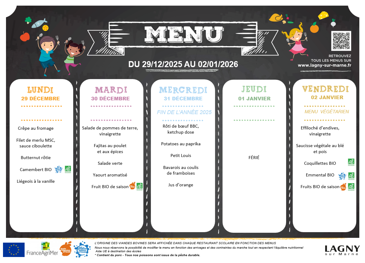 Télécharger le menu de la cantine du 29 décembre au 2 janvier
